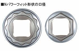 従来の工具は、ボルトの角に力が集中する「点接触」が一般的であり、これがボルトの角を傷め、破損させる大きな原因となっていました。これに対し、パワーフィット形状は口径部に独自の曲線を採用することで、ボルトの面で力を分散して受ける「面接触」を実現しました。